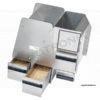 El tipo de depósito 2 se suministra con 3 depósitos de recogida idénticos. Cuenta con un depósito enganchado con un orificio para introducir y recolocar rápidamente el depósito de recogida. Dispone, además, de una trampilla que se abre justo antes del punto más alto y evita el polvo. La estructura cerrada resulta, por tanto, especialmente idónea para dividir a varios niveles muestras polvorientas, harinas, granulados y polvos.
